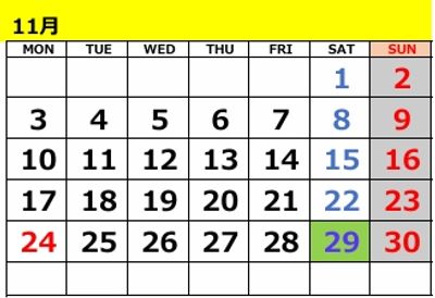 ★11/29(土)は振替日で通常レッスンはお休みとなります。