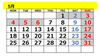 ★ 5月1日(金)から5月6日(水)はGW休暇のため、スクールはお休みとなっております。
