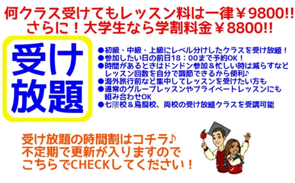 英語に毎日触れたい!週1回じゃ物足りないから通えるならどんどん通いたい!!という方は受け放題コースがおすすめ!